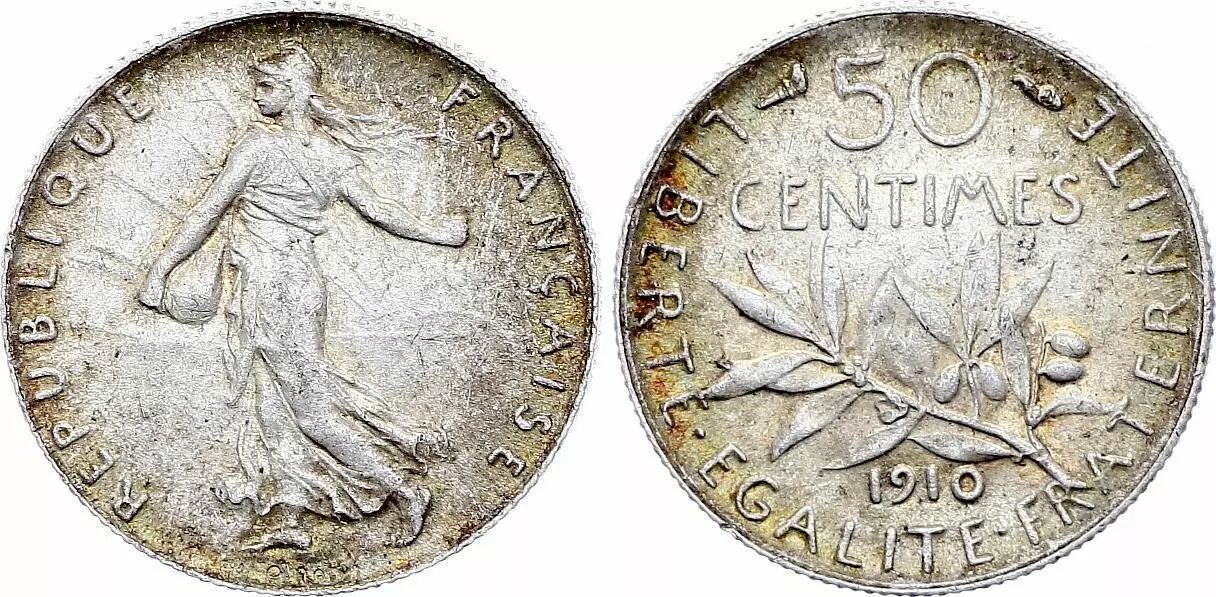 Pièce France 50 Centimes Semeuse - 1910 - Argent
