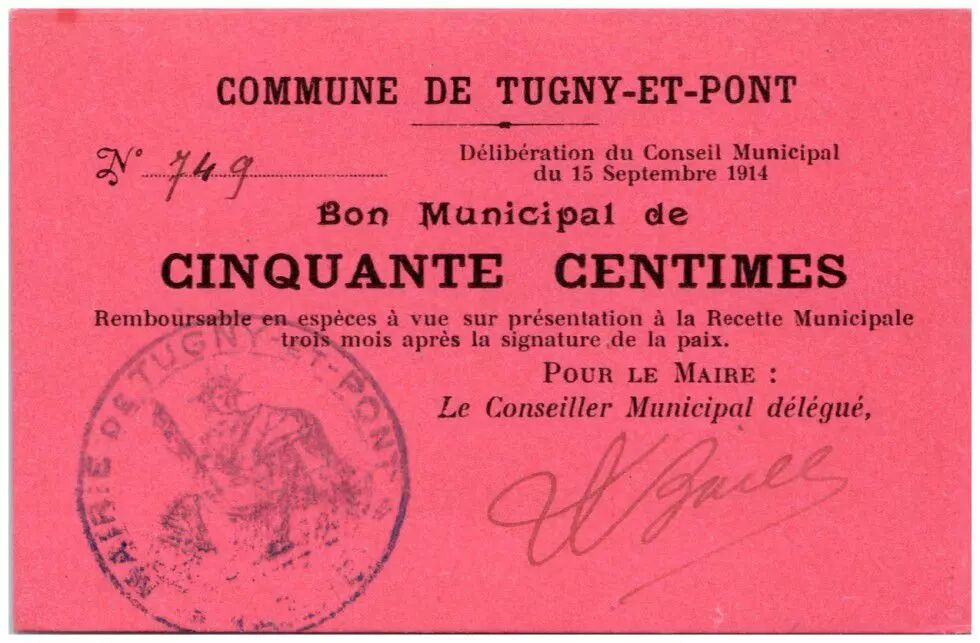 Billet France 50 Centimes Tugny-Et-Pont Commune - 1914