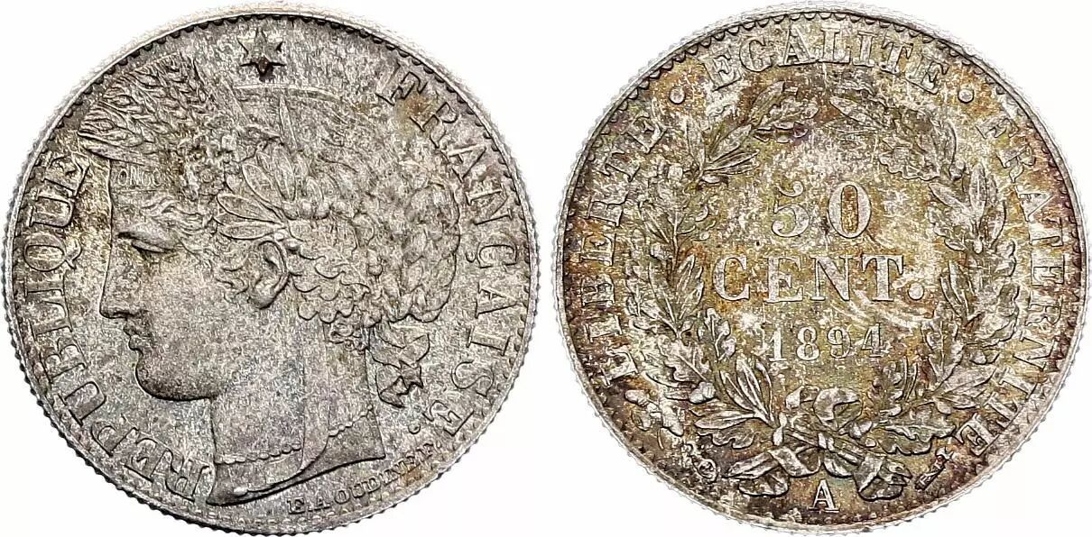 Coin France 50 Cents Ceres - Third Republic - 1894 A Paris - Silver