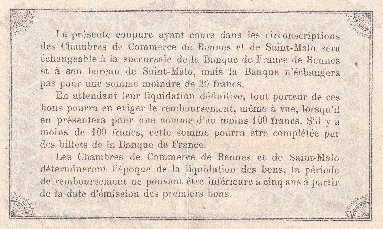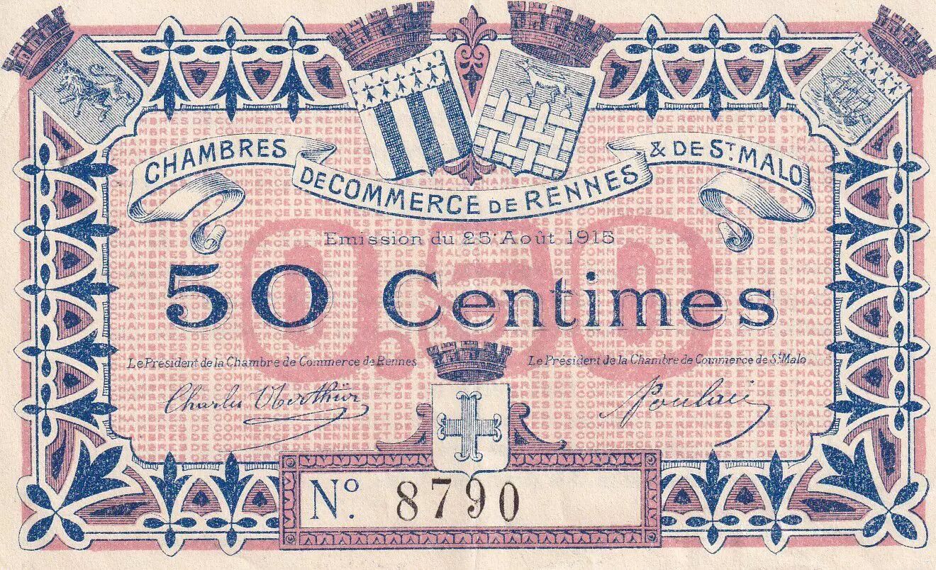 Home > French Banknotes > Necessity Money (1789-1945) > 1914-1925 Chamber of Commerce > France 50 Cents - Chambre de commerce de Rennes et Saint-Malo - 1915 - P.105-1