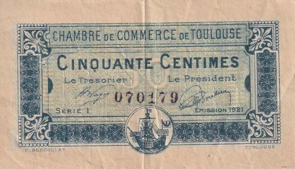 Home > > France 50 Cents - Chambre de commerce de Toulouse - 1921 - Serial 1 - P.122-39
