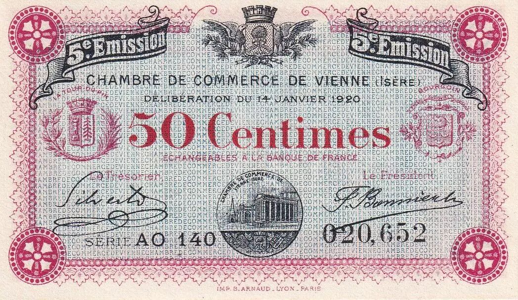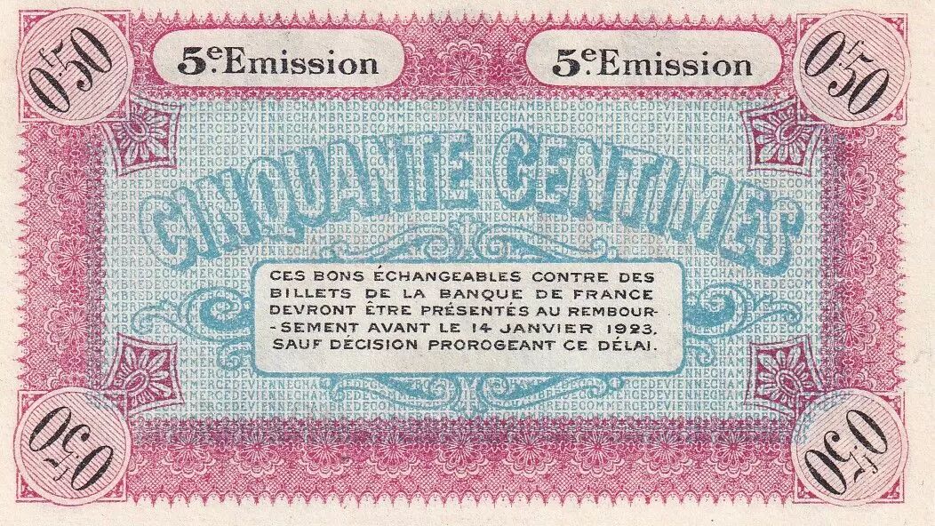 Banknote France 50 Cents - Chambre de commerce de Vienne - Serial AO 140- P.128-26