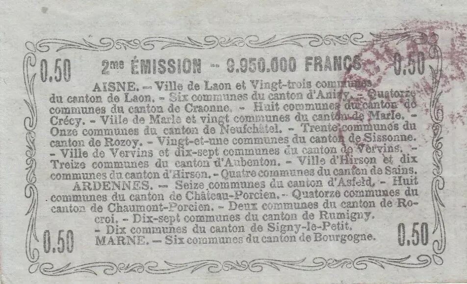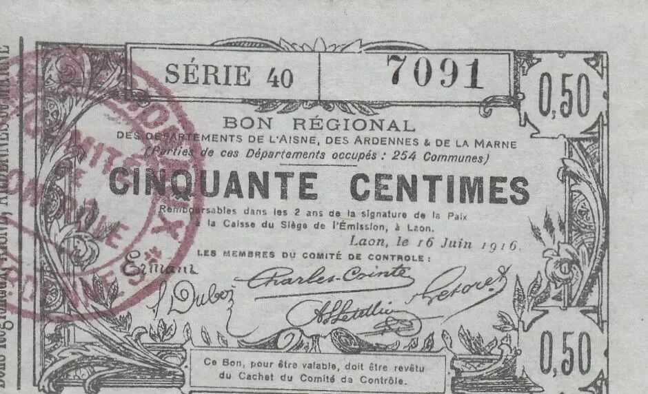 Banknote France 50 Cents - Laon - Regional Coupon - 16-06-1916 - Serial 40