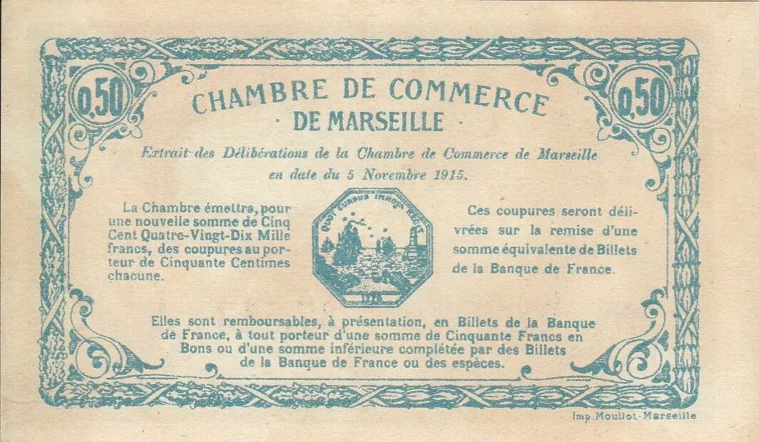Home > French Banknotes > Necessity Money (1789-1945) > 1914-1925 Chamber of Commerce > France 50 Cents - Marseille - Chamber of Commerce - 05-11-1915 - Serial XIII-R