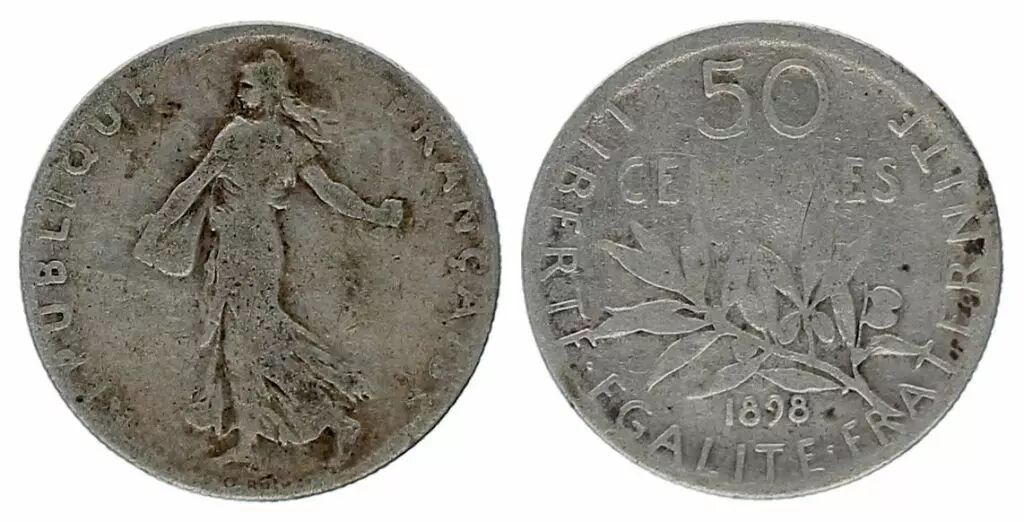 Coin France 50 Cents Semeuse - 1898 - Silver