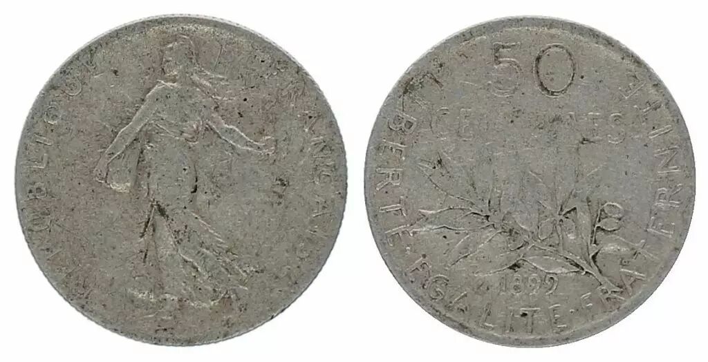 Coin France 50 Cents Semeuse - 1899 - Silver