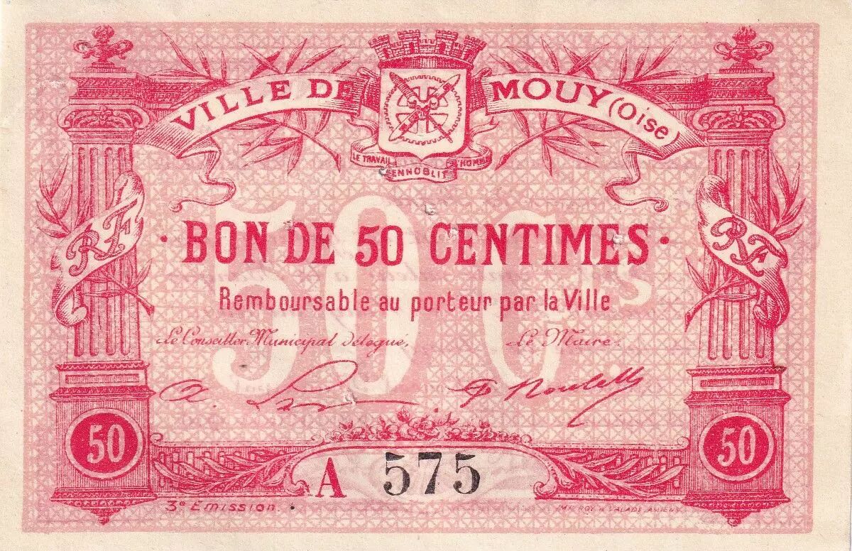 Home > > France 50 Cents - Ville de Mouy - 1916 - Serial A - P.60-52