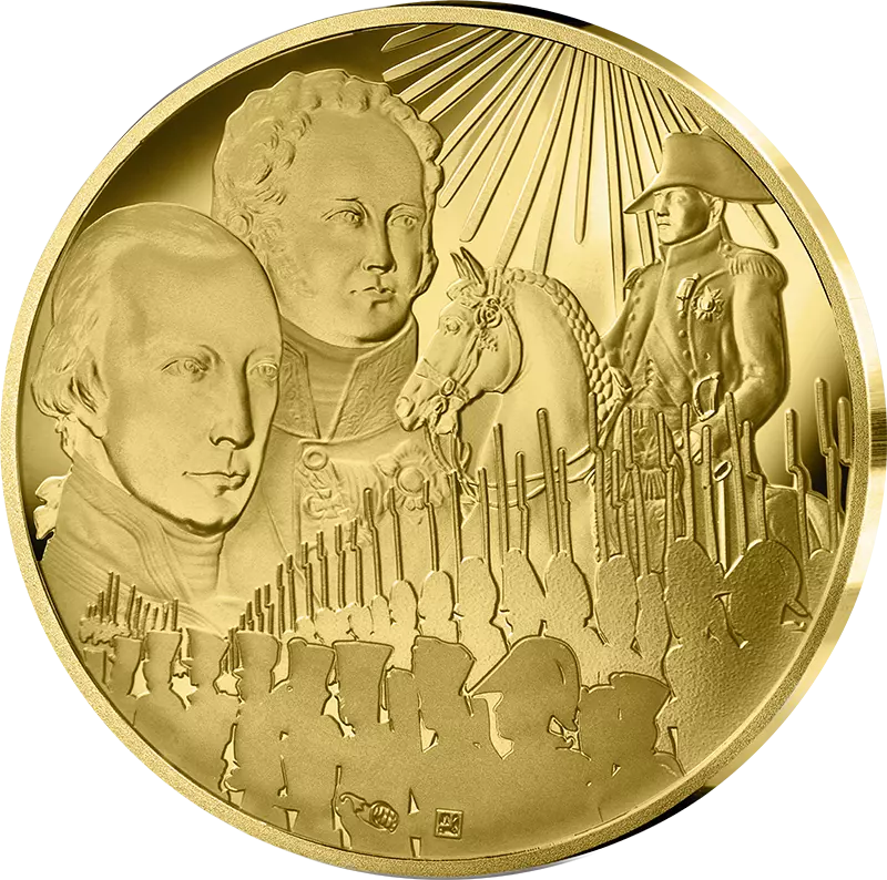 This coin is a tribute to the Battle of the Three Emperors, Austerlitz, highlighting the strategic importance of Napoleon and his legions against the armies of the Third Coalition.