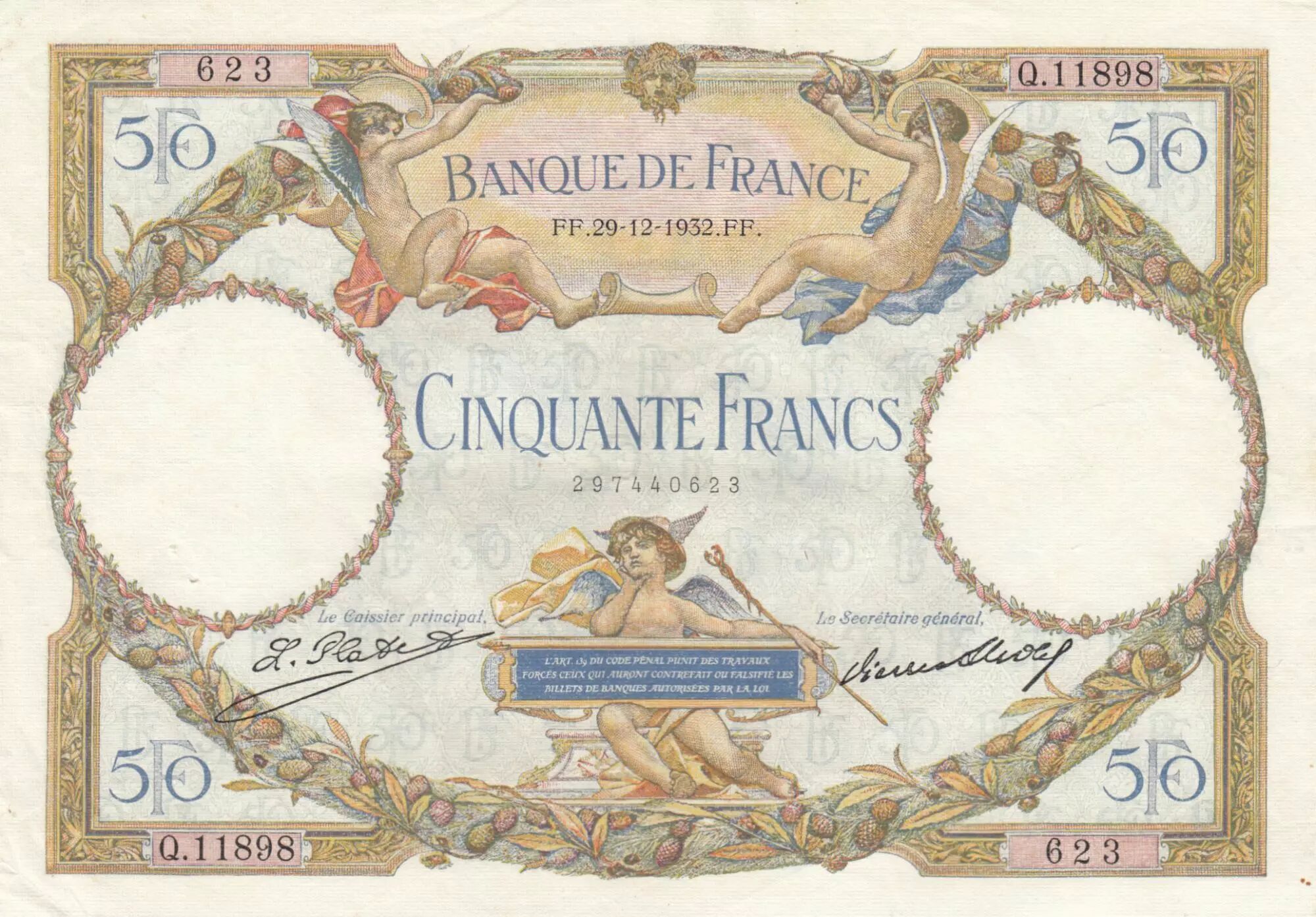 Banknote France 50 Francs - 29-12-1932 Serial Q.11898 - XF - P. 80