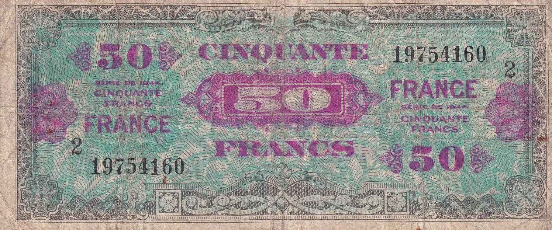 Banknote France 50 Francs - Allied Military Currency - Serial 2 - 1944