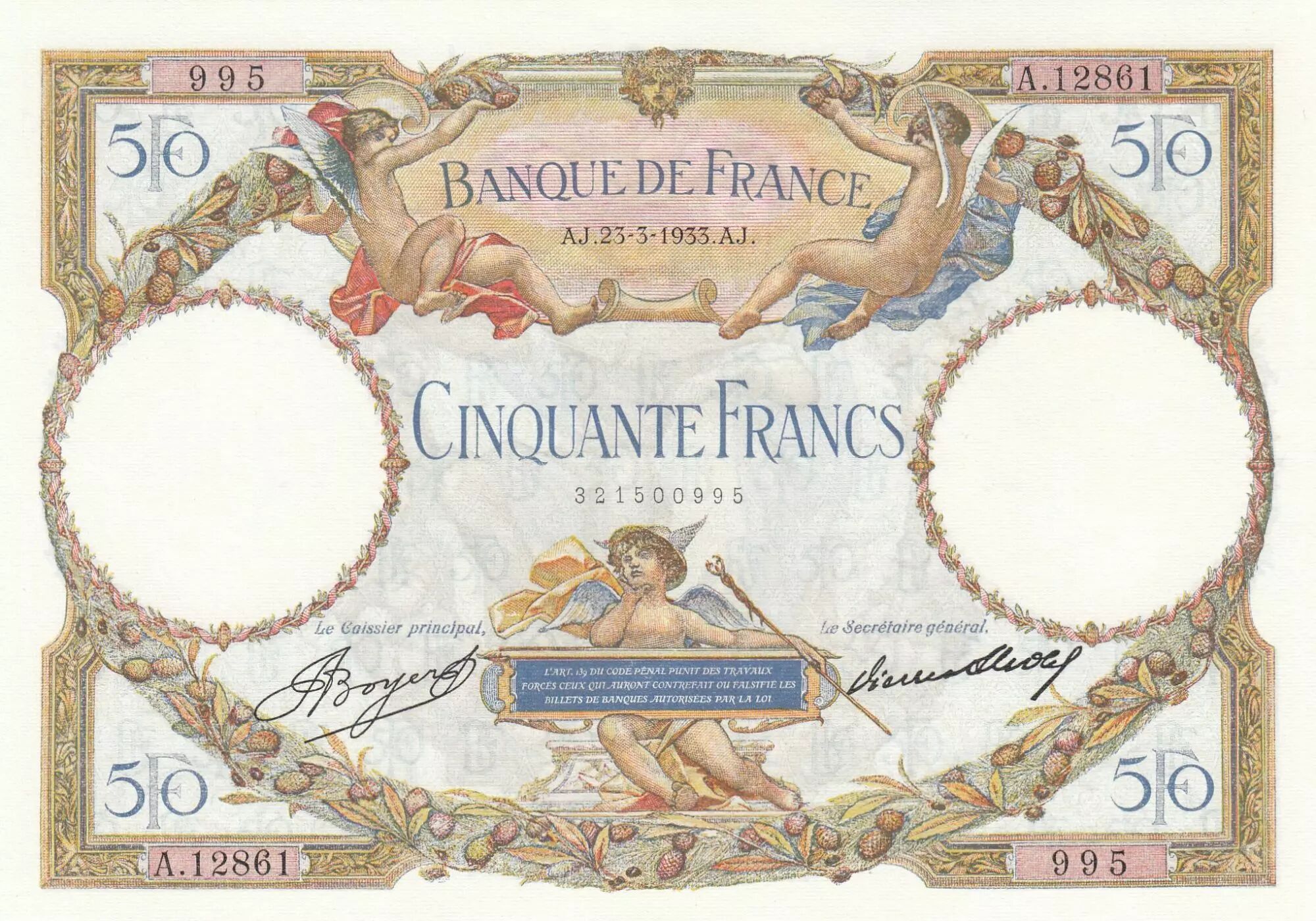 Banknote France 50 Francs - Angels - Mercury - 23-03-1933 - Série A.12861
