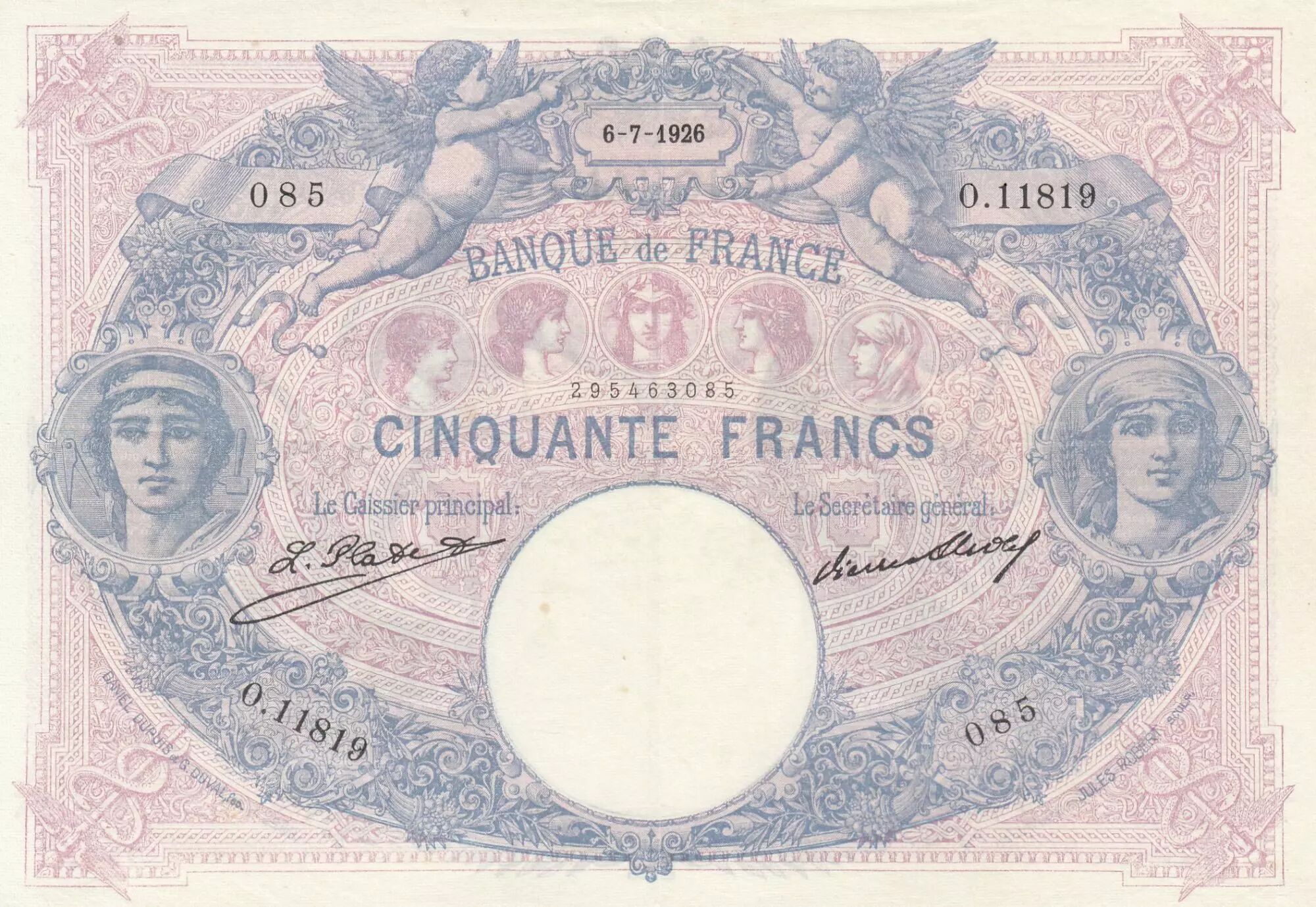 Accueil > Archivage > France 50 Francs - Bleu et Rose - 06-07-1926 - Série O.11819
