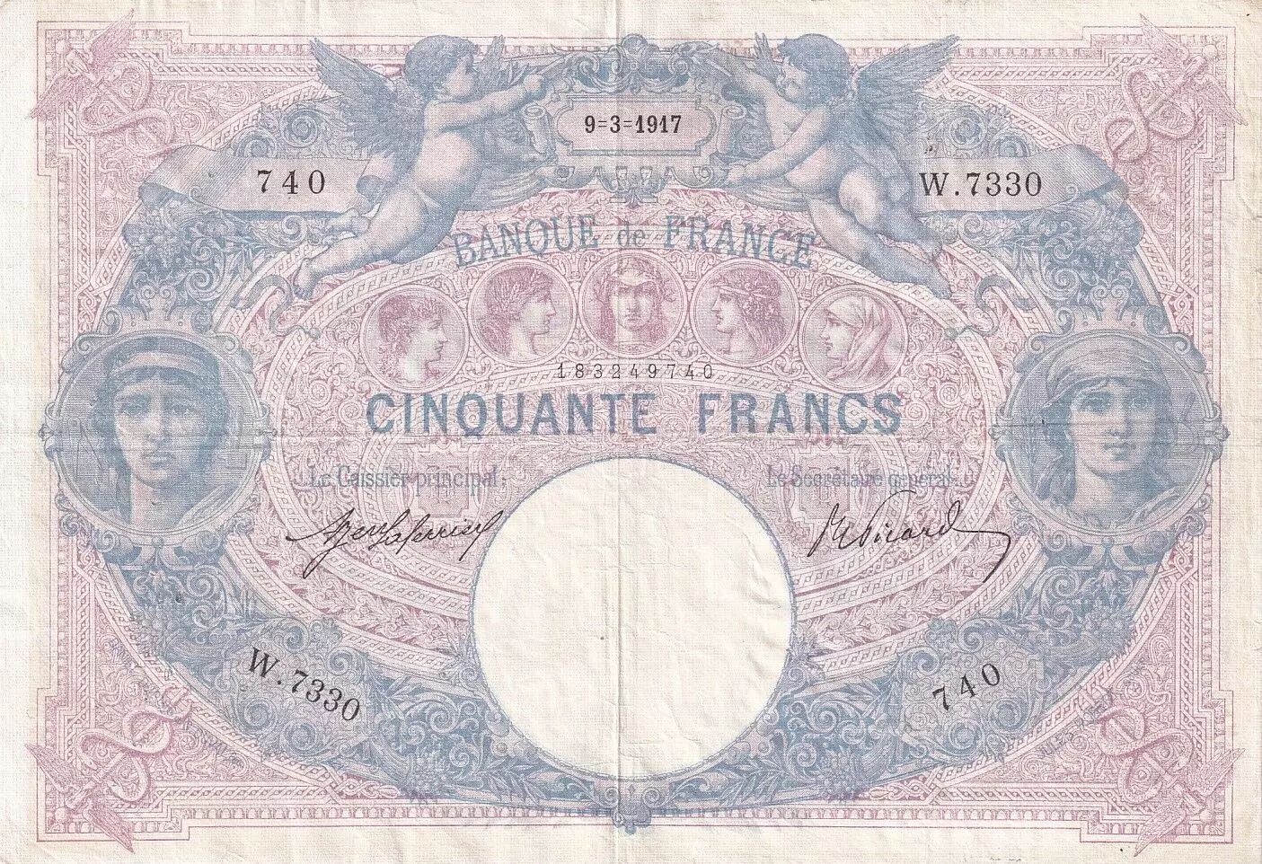 Billet France 50 Francs - Bleu et Rose - 09-03-1917 - Série W.7330