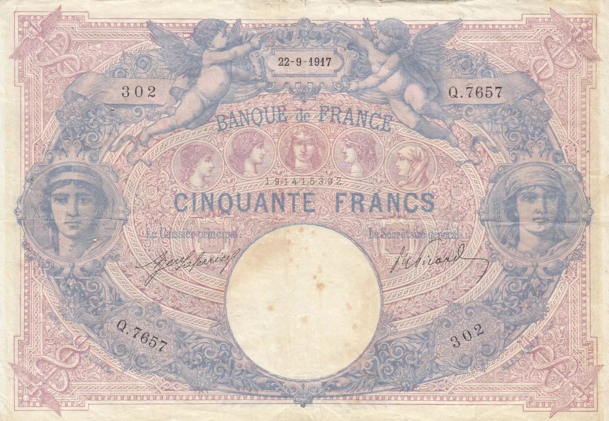 Home > > France 50 Francs - Blue and pink - 22-09-1917 - Serial Q.7657