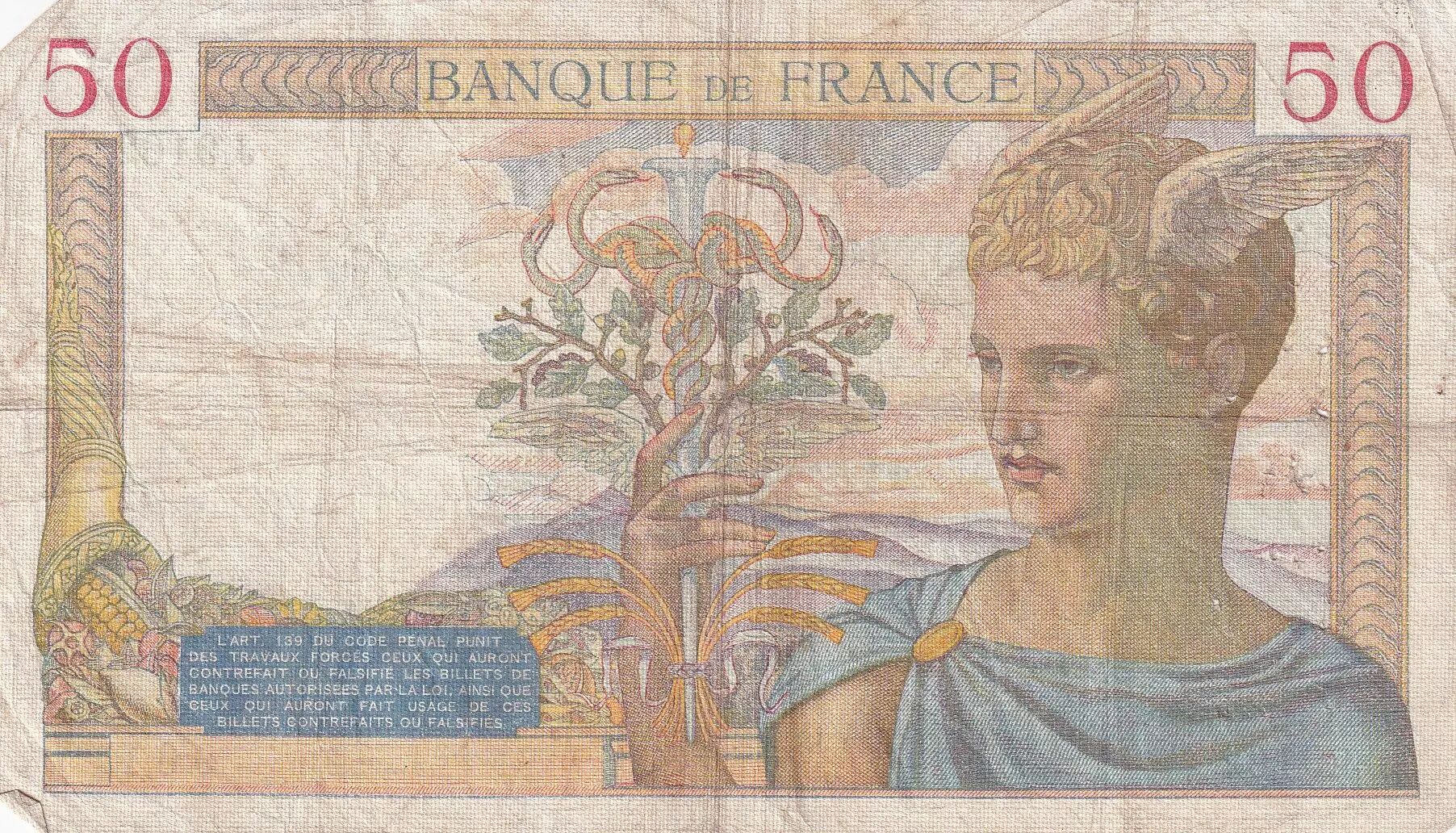 Banknote France 50 Francs Ceres - 03-11-1938 - Serial J.9162