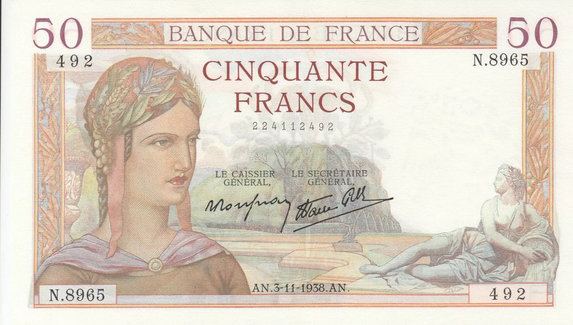 Billet France 50 Francs - Cérès - 03-11-1938 - Série N.8965