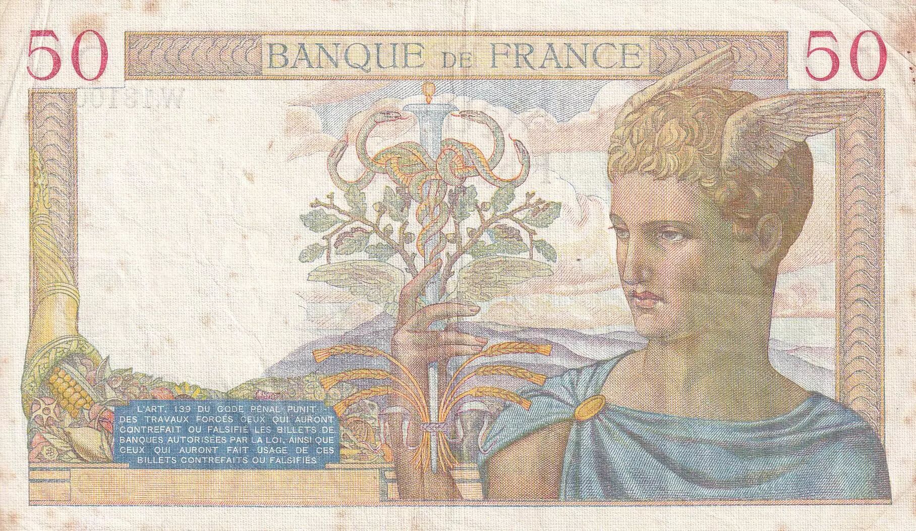 Billet France 50 Francs - Cérès - 04-04-1940 - Série W.13100 - TTB - F.18.42
