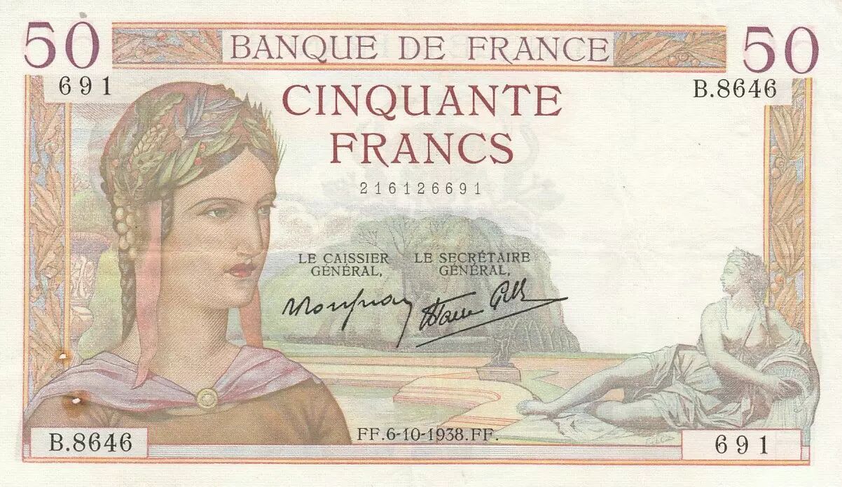 Banknote France 50 Francs Ceres - 06-10-1938 - Serial B.8646