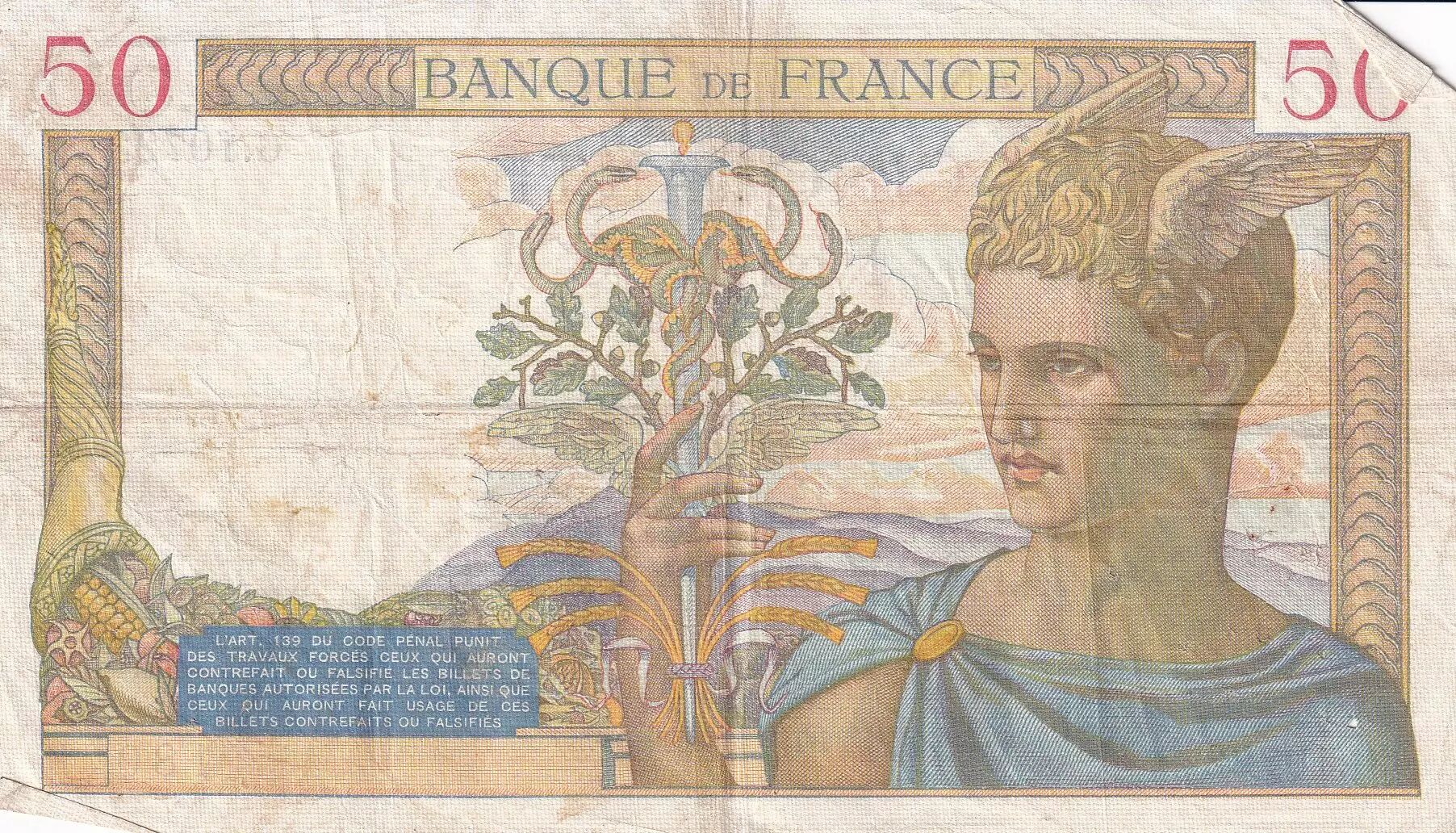 Billet France 50 Francs Cérès - 10-08-1939 - Série G.10723