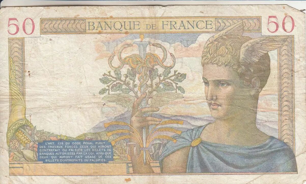 Banknote France 50 Francs Ceres - 14-03-1940 - Serial W.12964