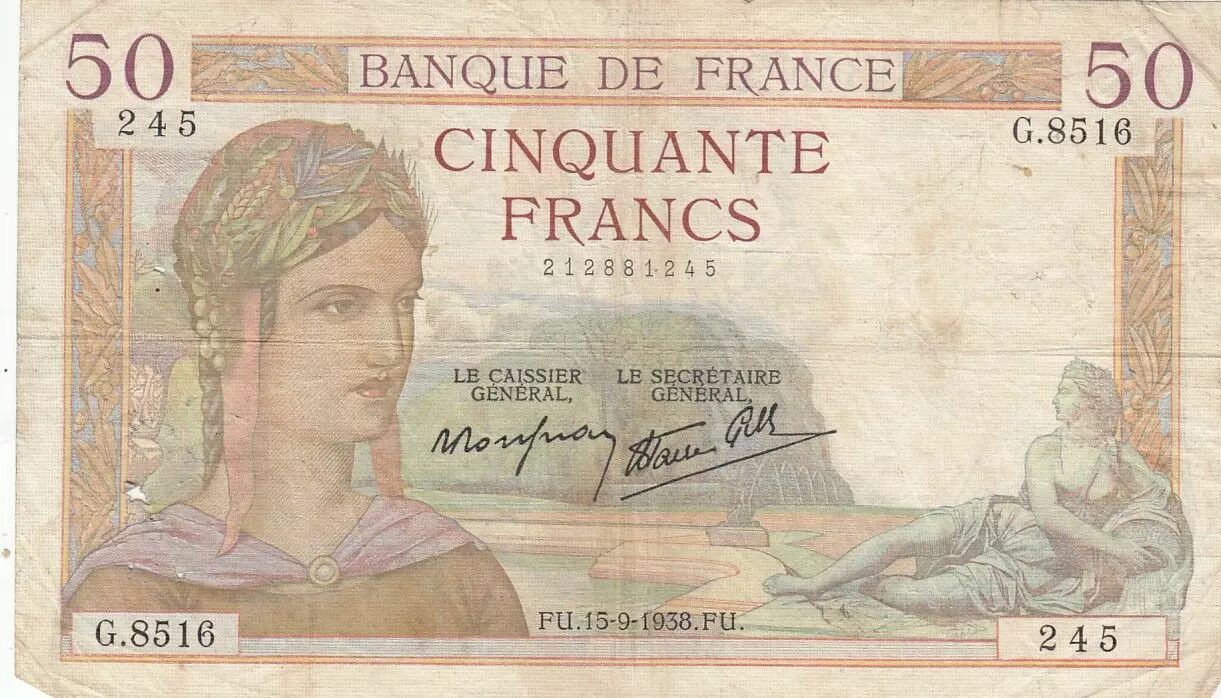 Billet France 50 Francs Cérès - 15-09-1938 - Série G.8516