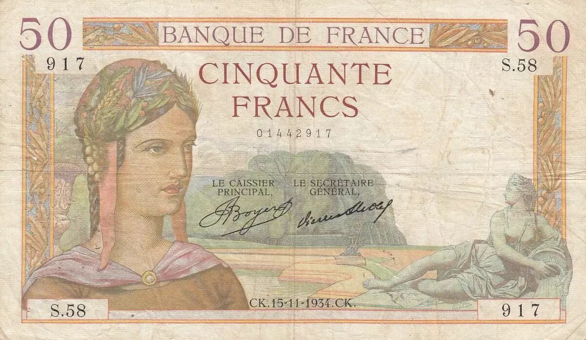 Billet France 50 Francs Cérès - 15-11-1934 - Série S.58