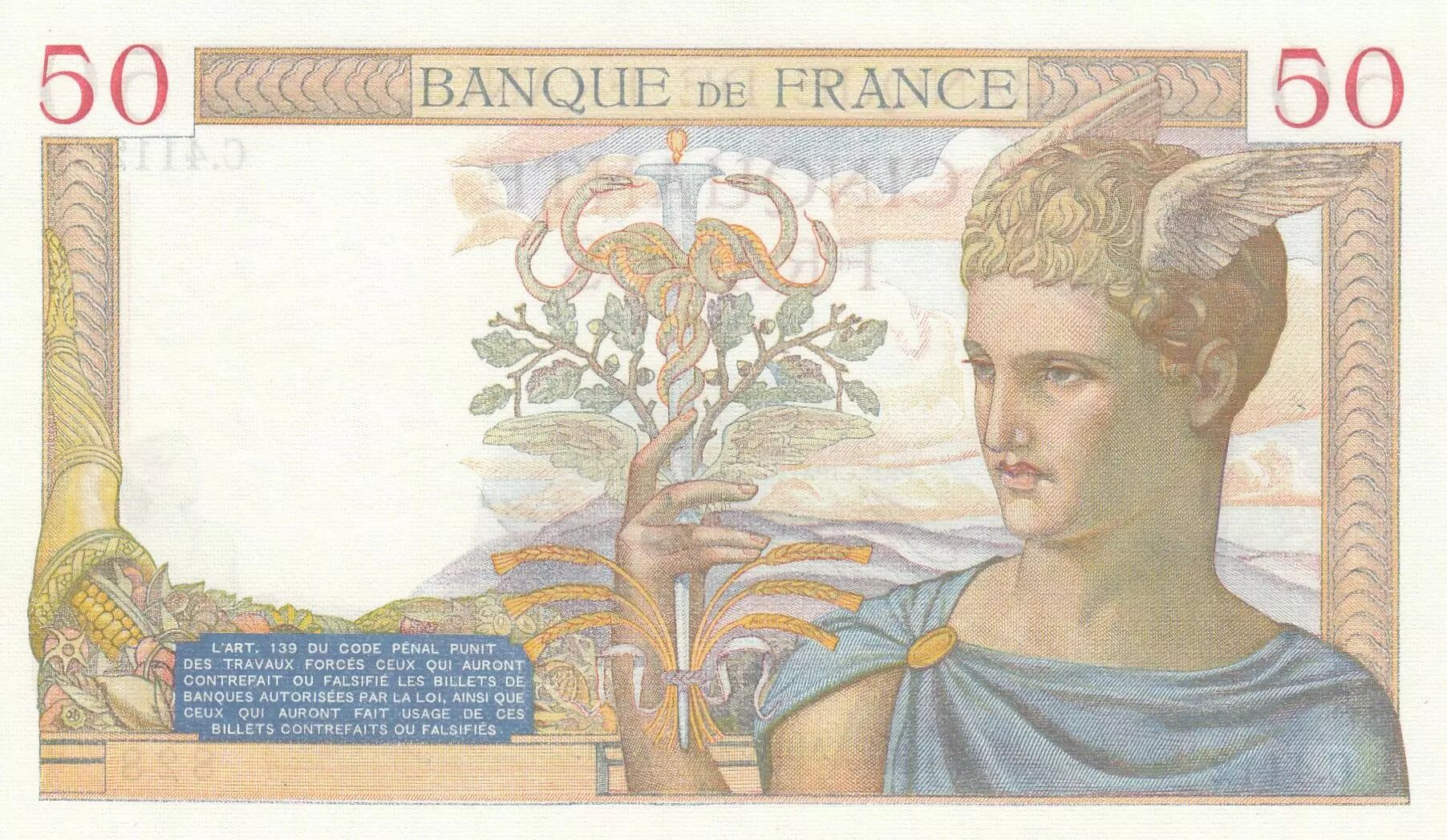 Banknote France 50 Francs Ceres - 16-04-1936 - Serial C.4112