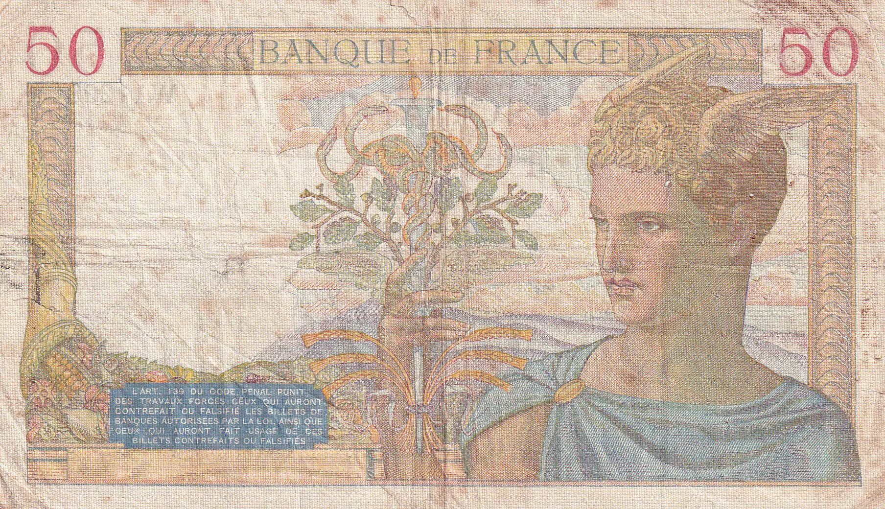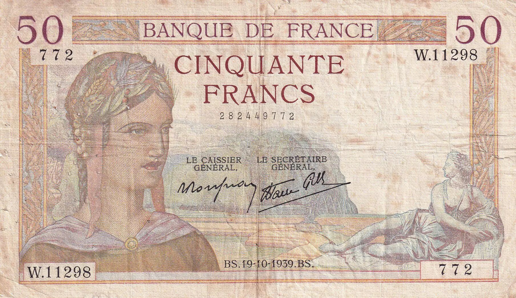 Banknote France 50 Francs - Cérès - 19-10-1939 - Serial W.11298 - P.85