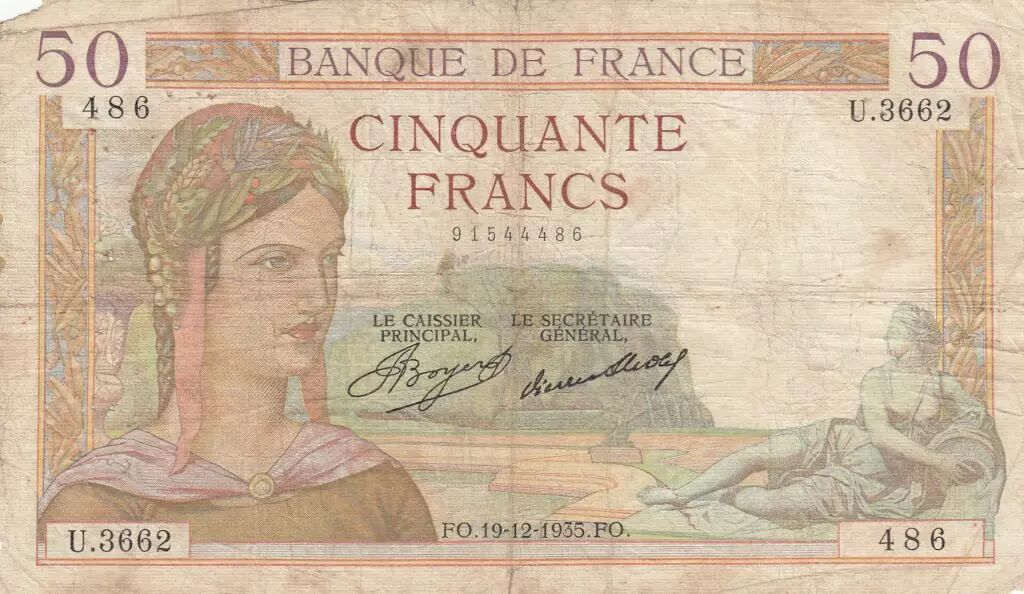 Banknote France 50 Francs Ceres - 19-12-1935 - Serial U.3662