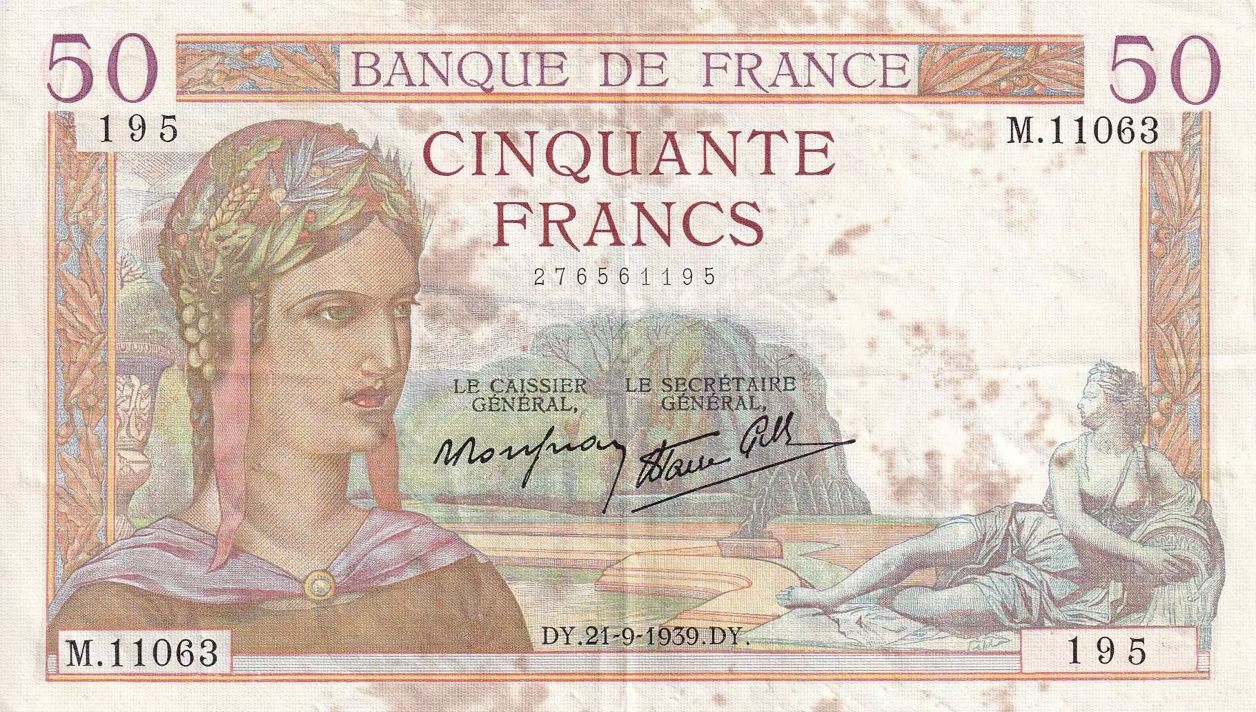 Billet France 50 Francs - Cérès - 21-09-1939 - Série M.11063 - TTB - F.18.31