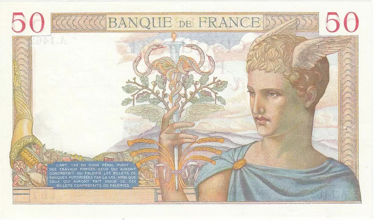 Home > > France 50 Francs Ceres - 25-04-1935 - Serial A.1462 - PMG 63
