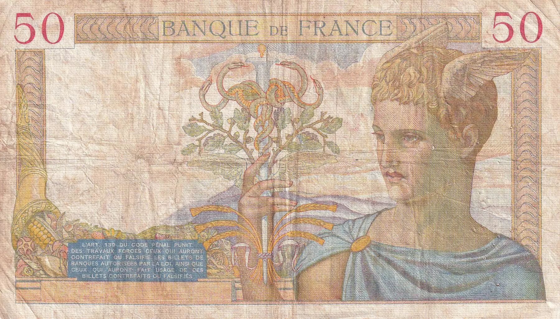 Home > > France 50 Francs - Cérès - 25-04-1935 - Serial X.1488 - F - P.81