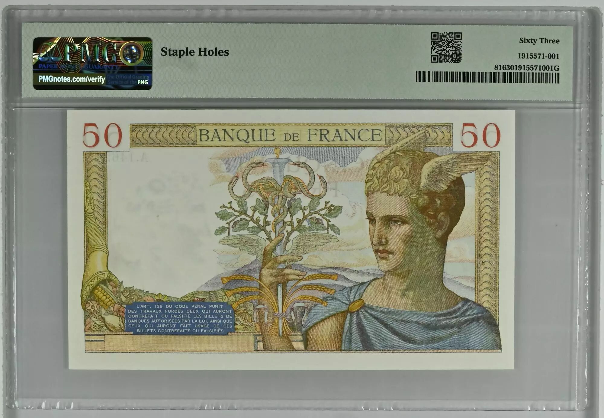 Accueil > Archivage > France 50 Francs Cérès - 25-04-1935 - Série A.1462 - PMG 63