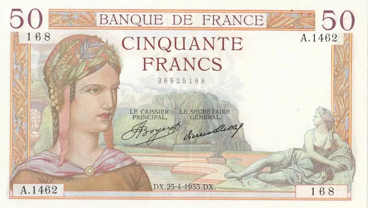 Billet France 50 Francs Cérès - 25-04-1935 - Série A.1462 - PMG 63