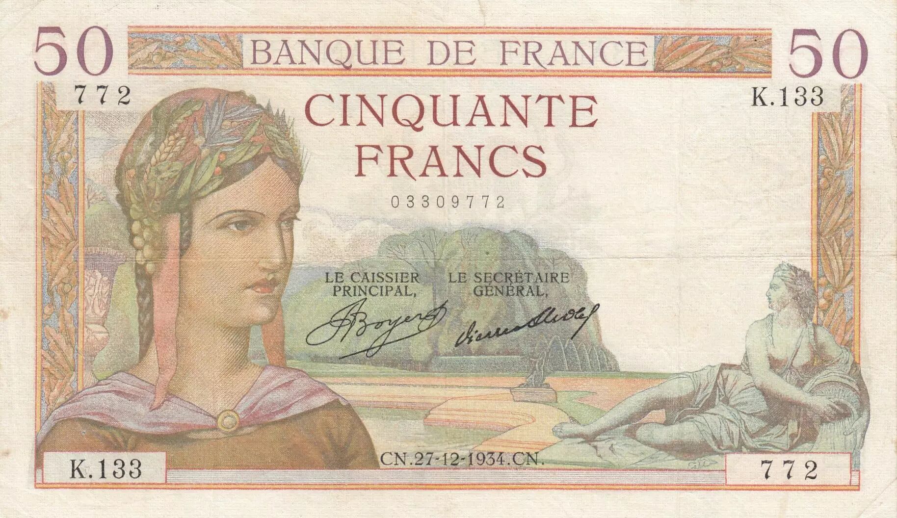 Banknote France 50 Francs - Ceres - 27-12-1934 - Serial K.133 - P.81
