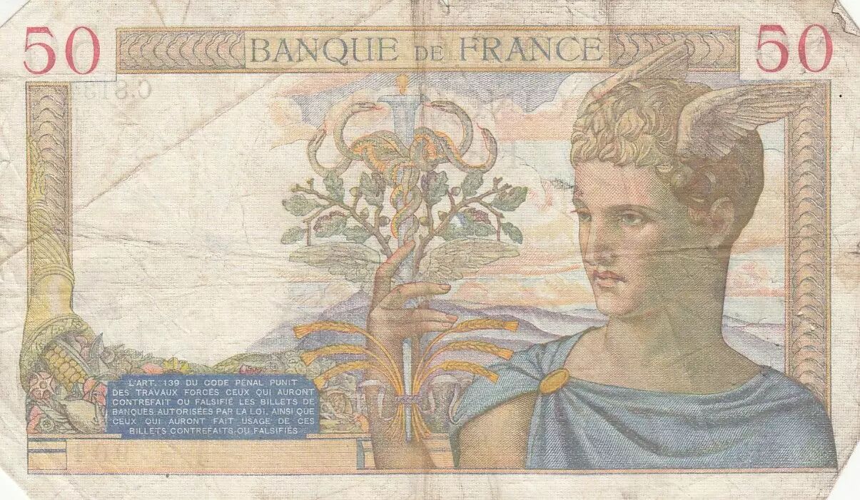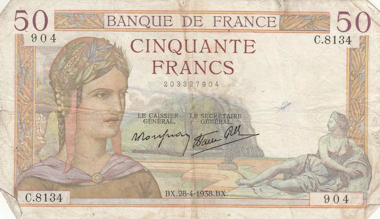 Banknote France 50 Francs Ceres - 28-04-1938 - Serial C.8134