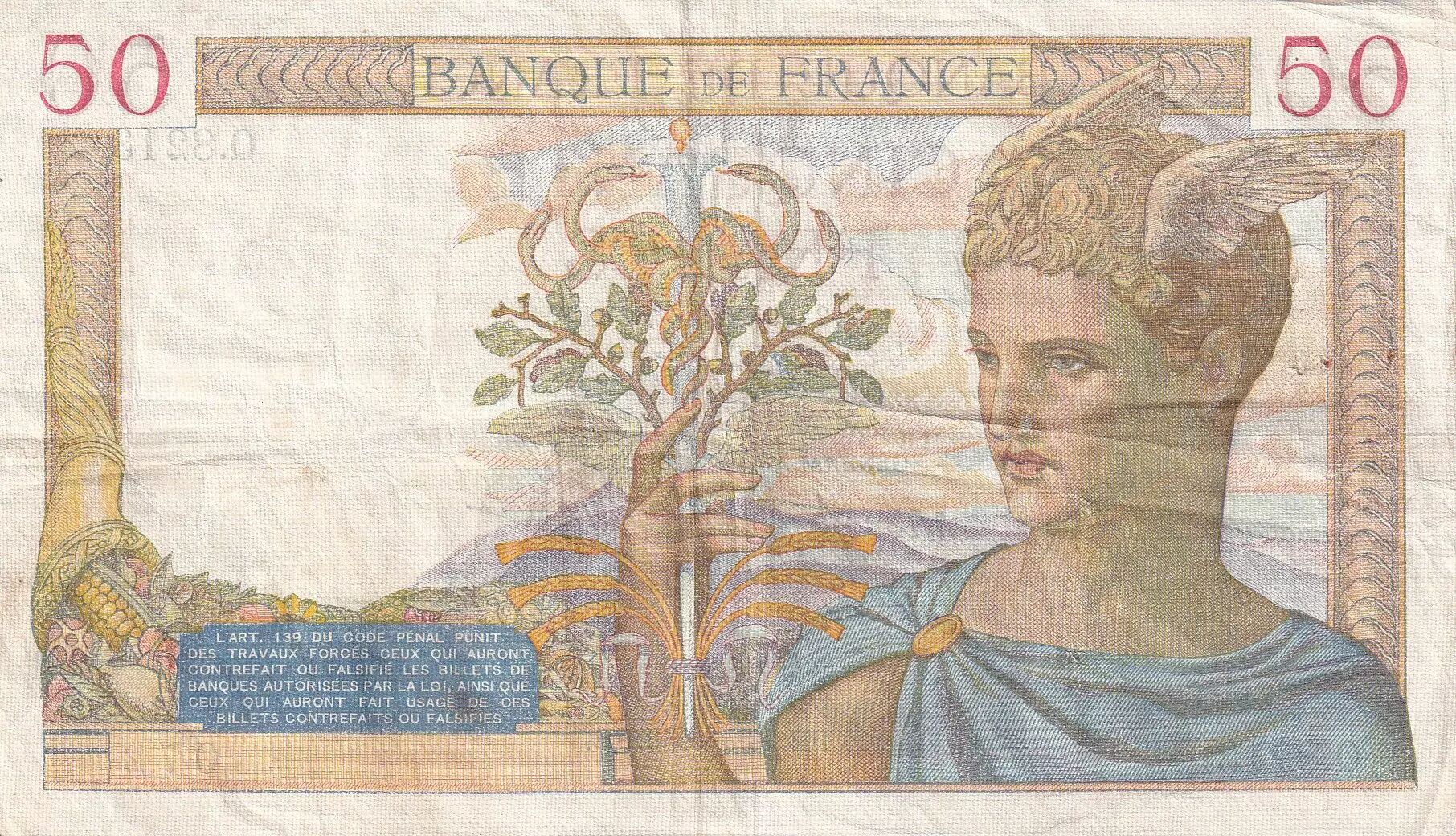 Billet France 50 Francs Cérès - 28-04-1938 - Série Q.8213