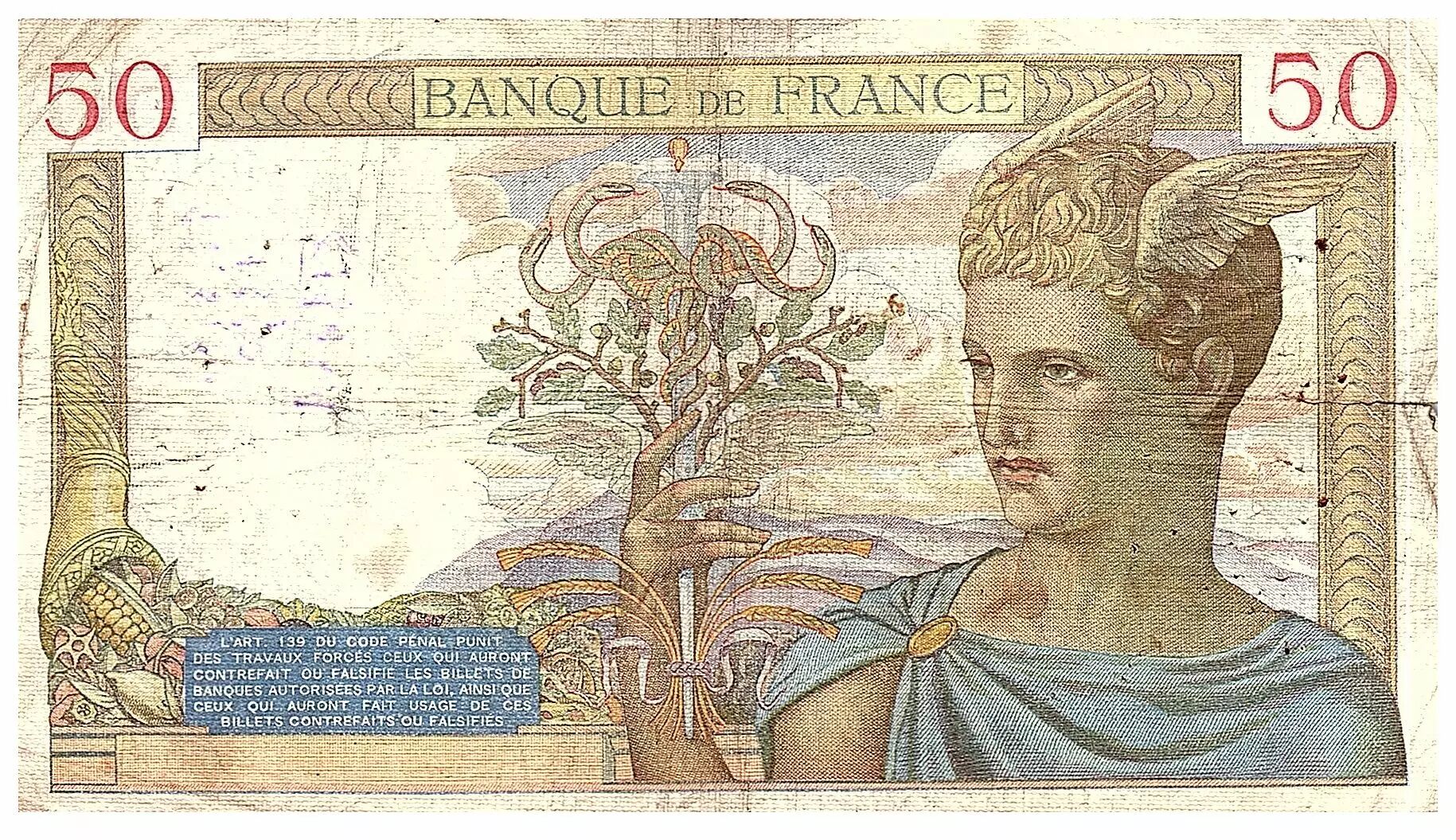Folds, pinholes, mathematical operation carried out on the (vintage) banknote