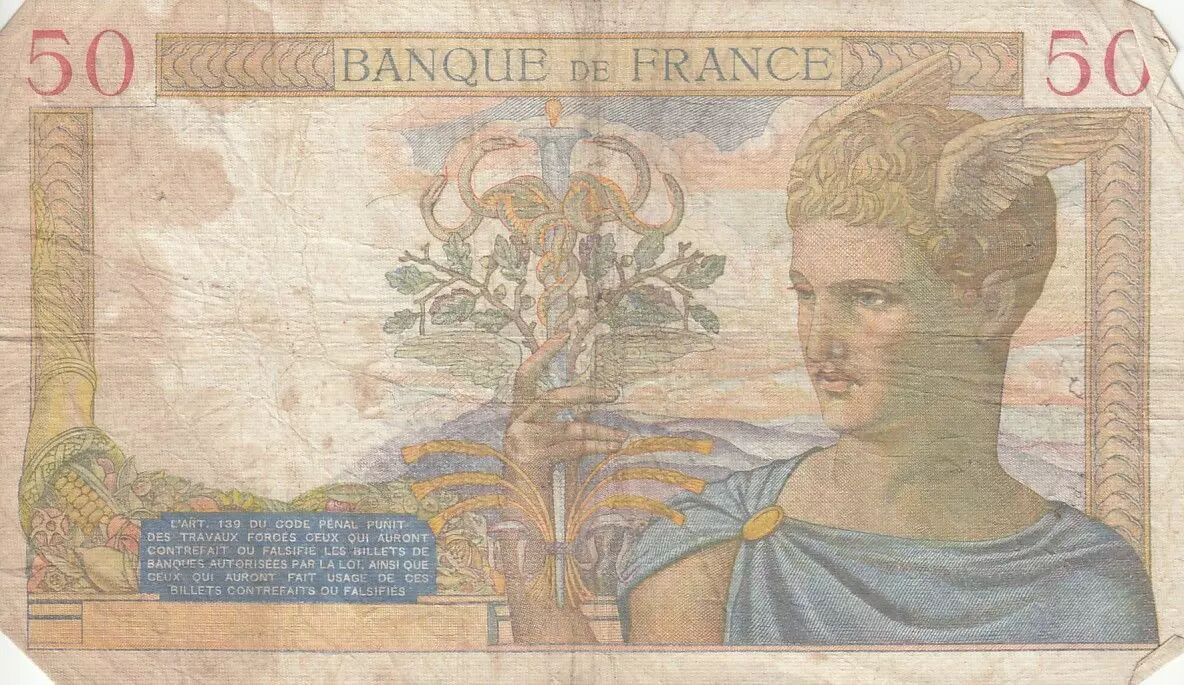 Banknote France 50 Francs Ceres - 29-02-1940 - Serial B.12867