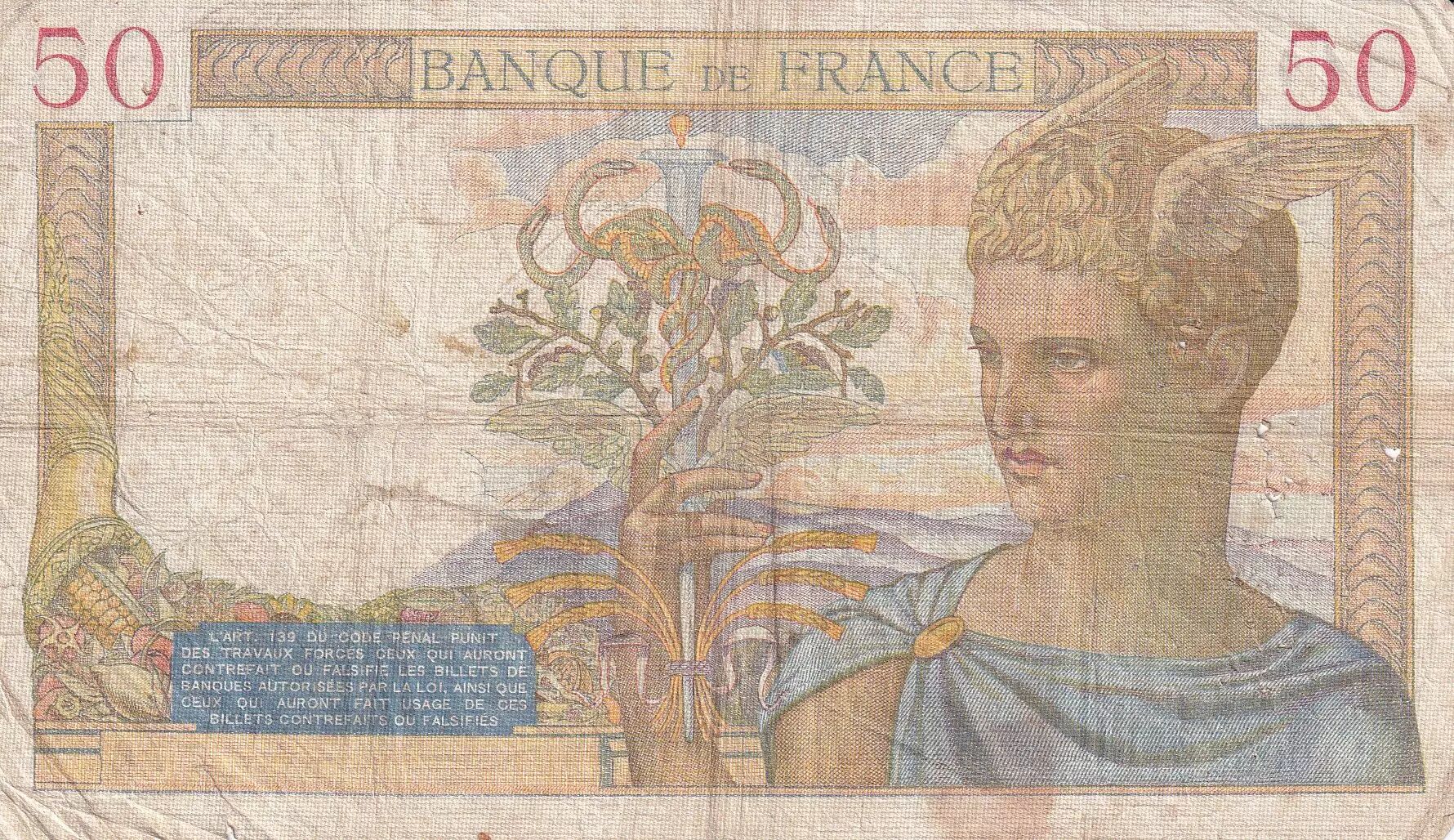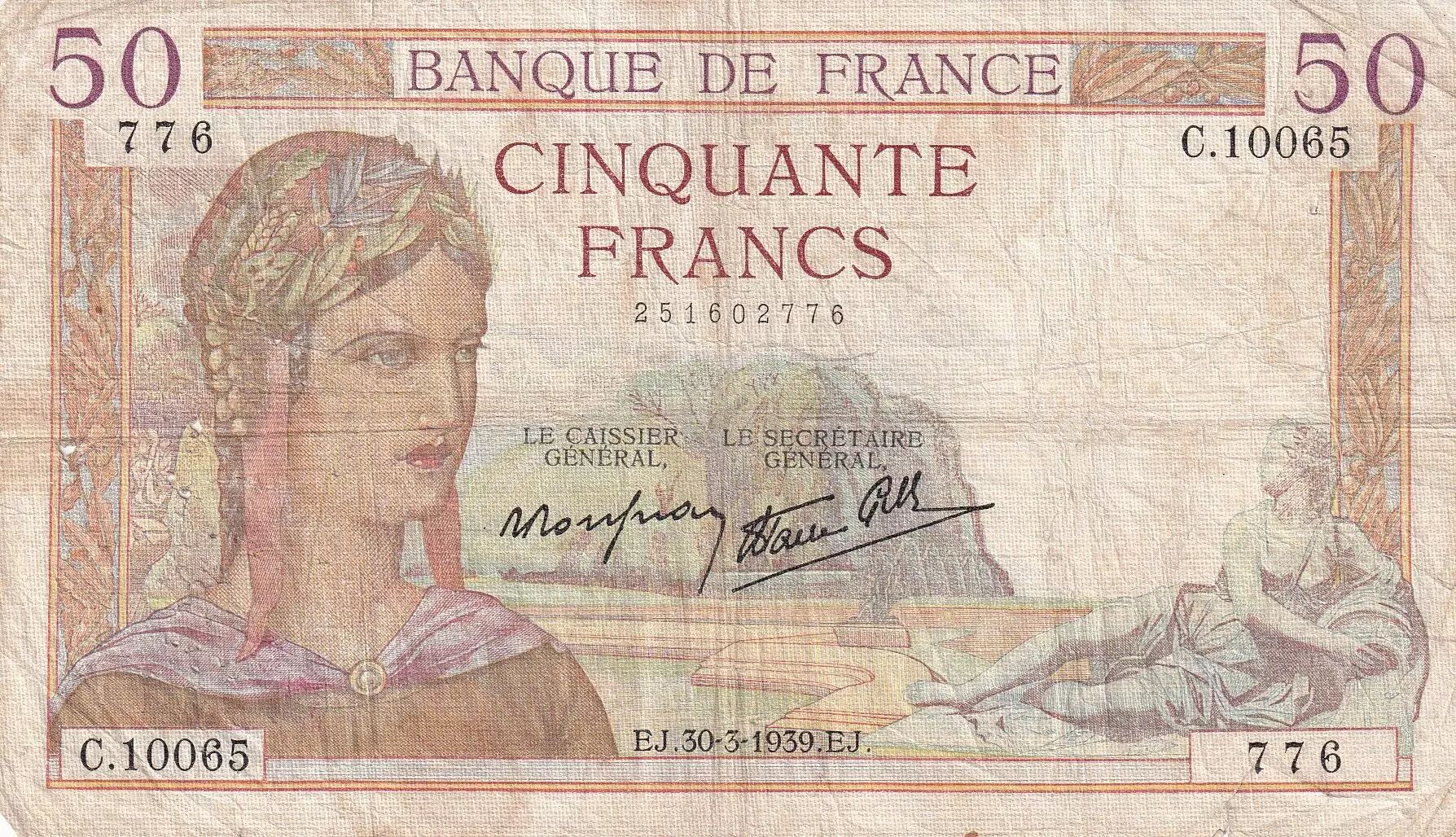 Banknote France 50 Francs Ceres - 30-03-1939 - Serial C.10065
