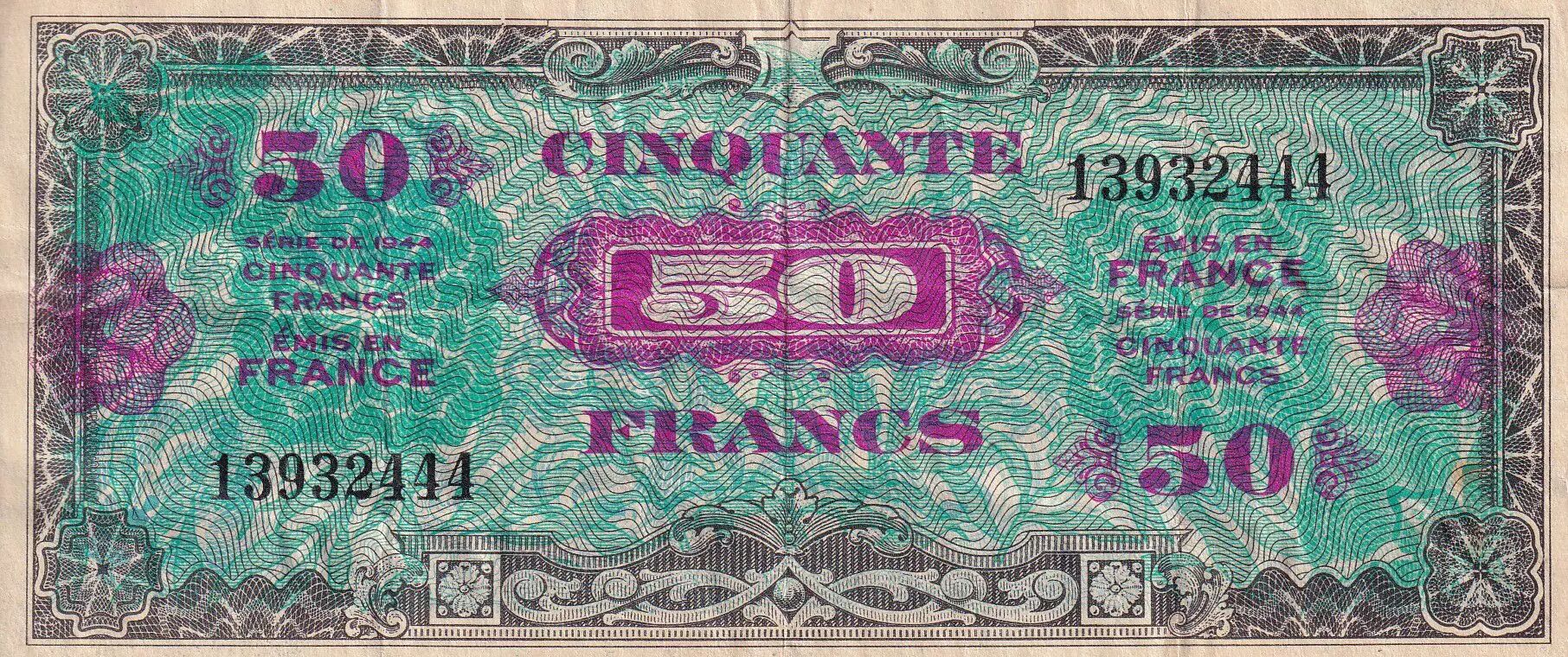 Accueil > Archivage > France 50 Francs - Drapeau - 1944 - Sans Série - TB+ - VF.19.01