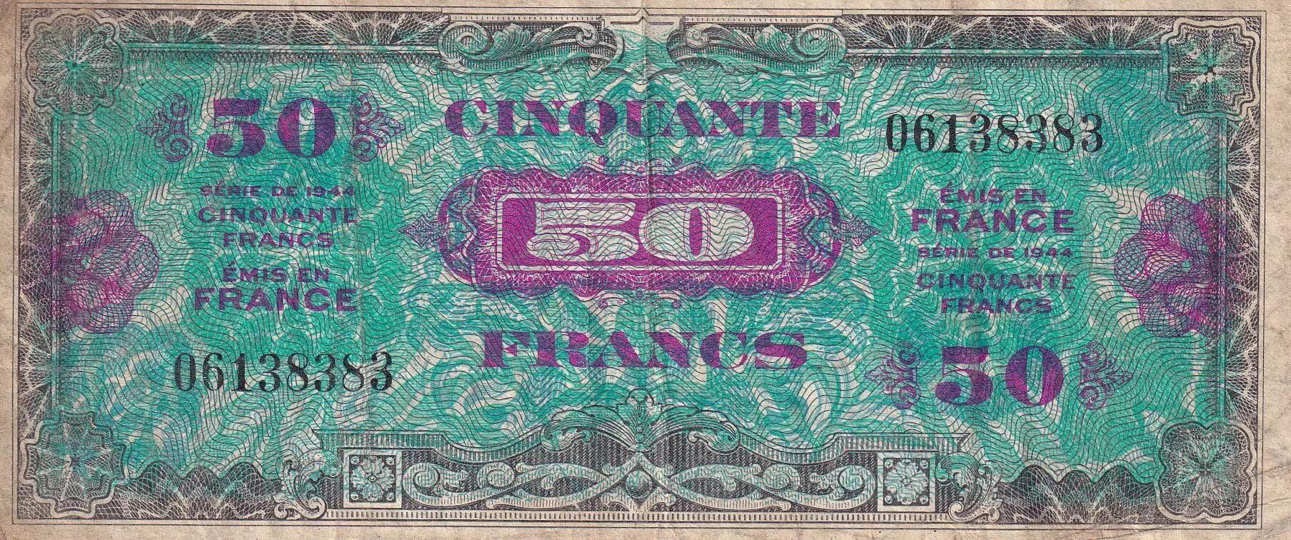Home > > France 50 Francs - Flag - 1944 - Without serial - P.117