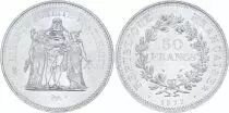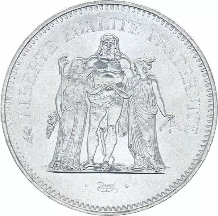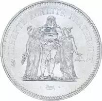 Revers : Le revers de la pièce présente une couronne composée de branches de chêne et de laurier. Au centre de cette couronne figure la valeur nominale "50 FRANCS" et l'année d'émission. Autour de la couronne, on peut lire "LIBERTÉ ÉGALITÉ FRATERNITÉ".