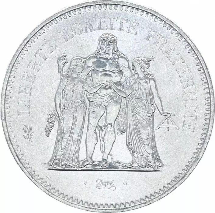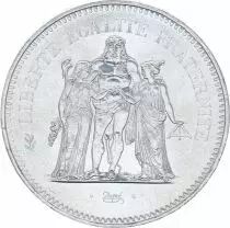 Revers : Le revers de la pièce présente une couronne composée de branches de chêne et de laurier. Au centre de cette couronne figure la valeur nominale "50 FRANCS" et l'année d'émission. Autour de la couronne, on peut lire "LIBERTÉ ÉGALITÉ FRATERNITÉ".