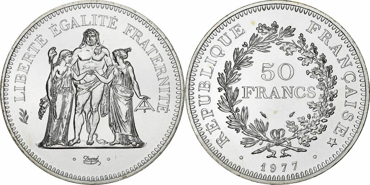 The 1977 50 Francs ?Hercules? coin is one of the great silver coins of the Fifth Republic. It takes up the famous type created by Augustin Dupré at the end of the 18th century, reinterpreted for modern issues. Introduced in a context of inflation and monetary change, this coin embodies one of the last major French circulation coins containing a significant amount of silver.