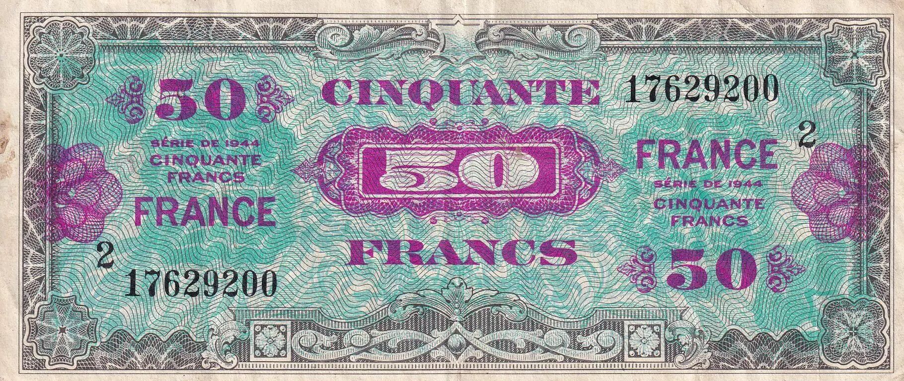 Accueil > Archivage > France 50 Francs - Impr. américaine (Drapeau) - 1944 - Série 2 - TB+ - VF.24.02