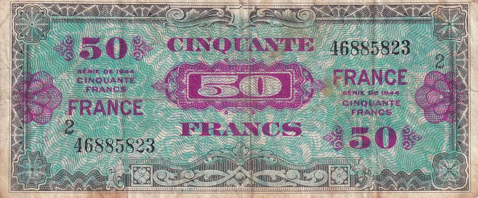 Accueil > Archivage > France 50 Francs - Impr. américaine (Drapeau) - 1944 - Série 2 - TB - VF.24.02