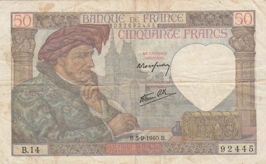 Billet France 50 Francs Jacques Coeur - 05-09-1940 - Série B.14