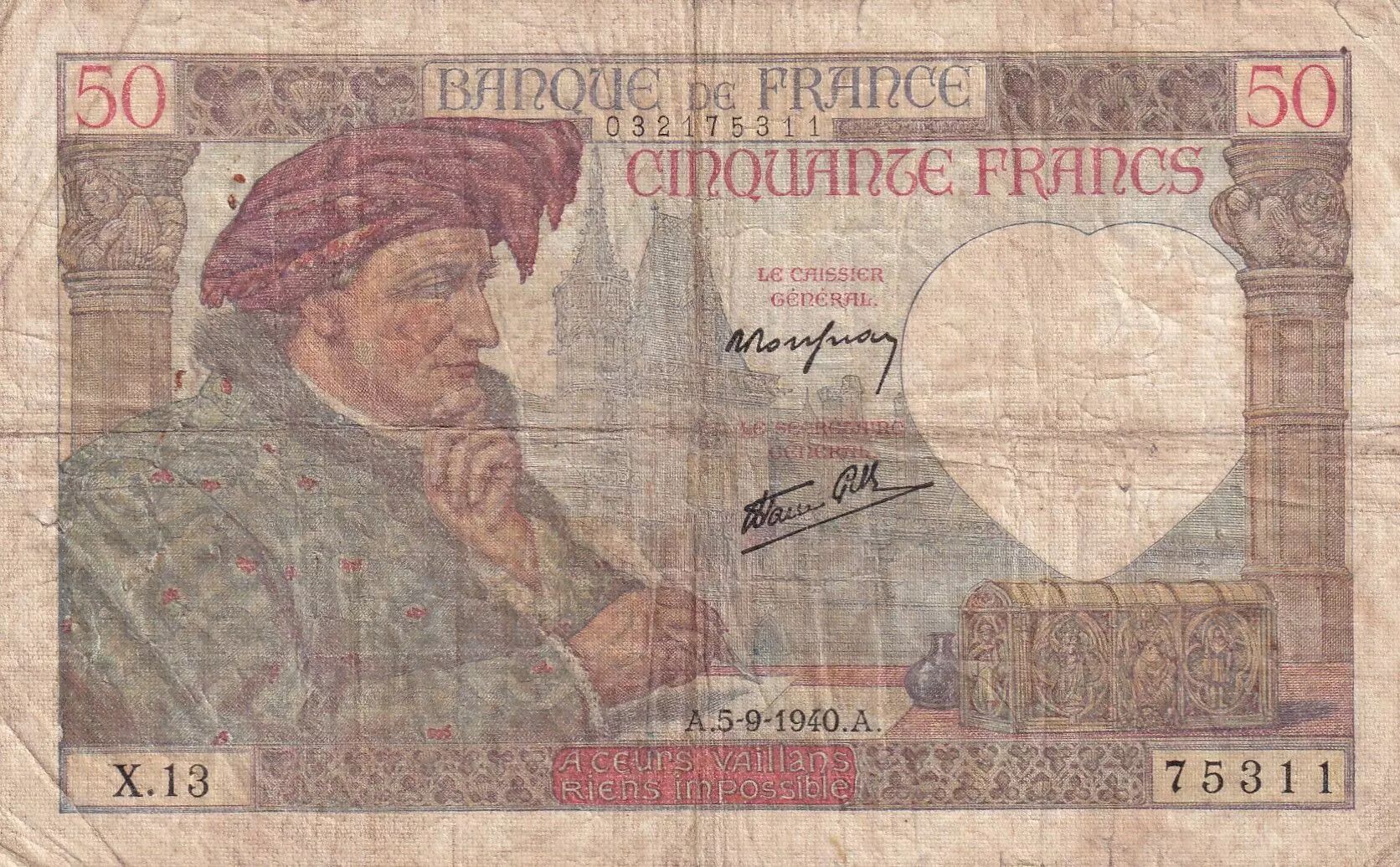 plis, salissures, épinglages, billet usagé, trace de rouille, tâches, trace d'encre à l'arrière du billet, déchirures