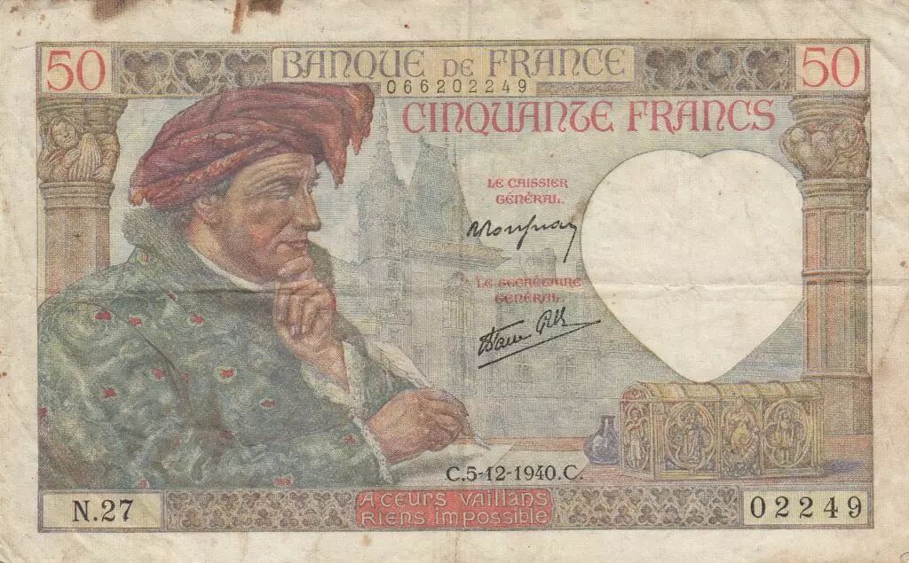Banknote France 50 Francs Jacques Coeur - 05-12-1940 - Serial N.27